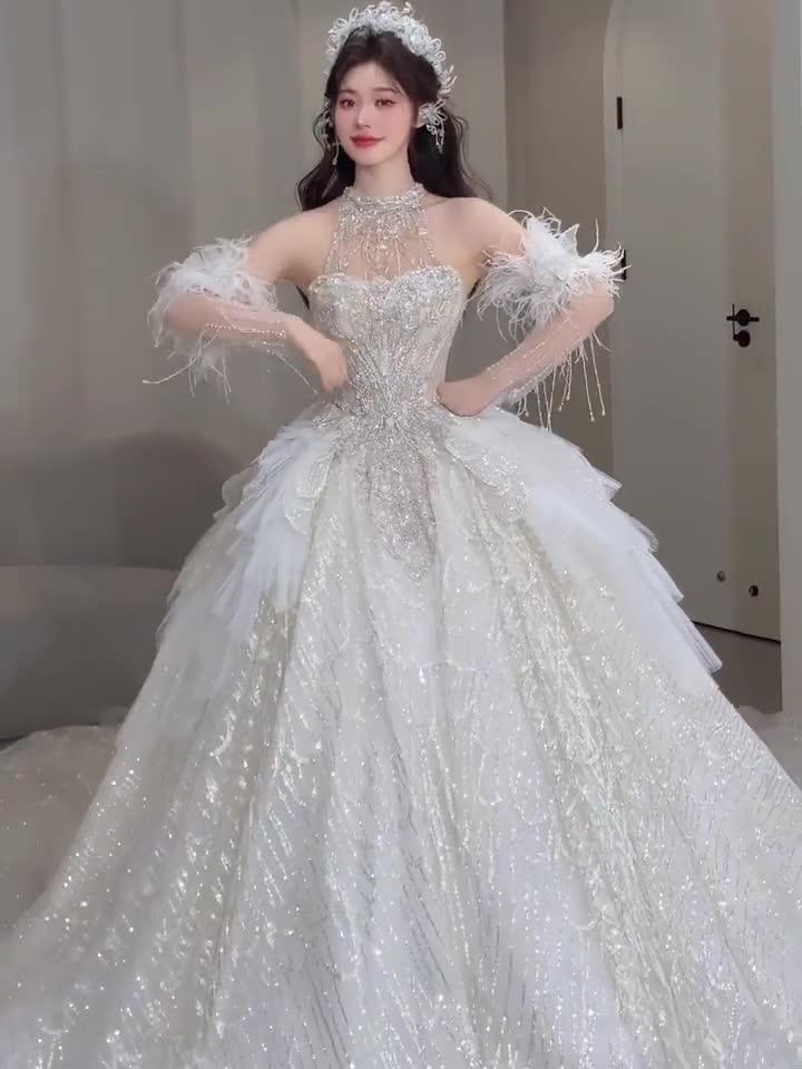 【麥芽糖】一字肩水晶主紗