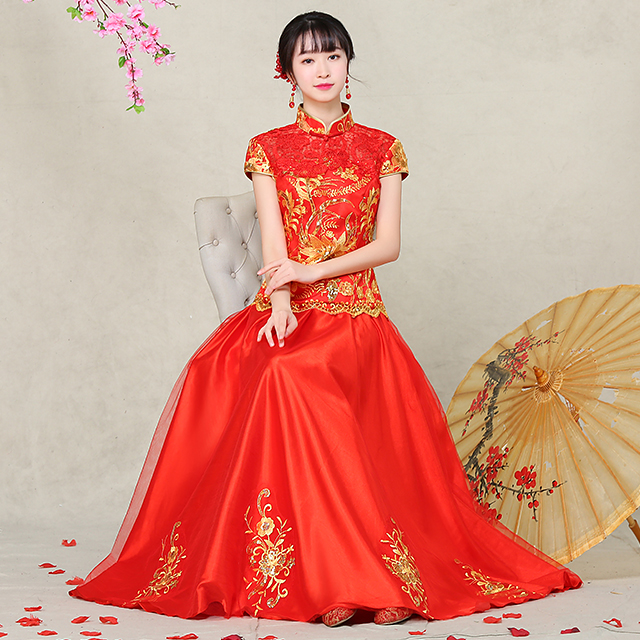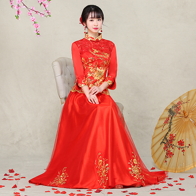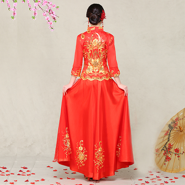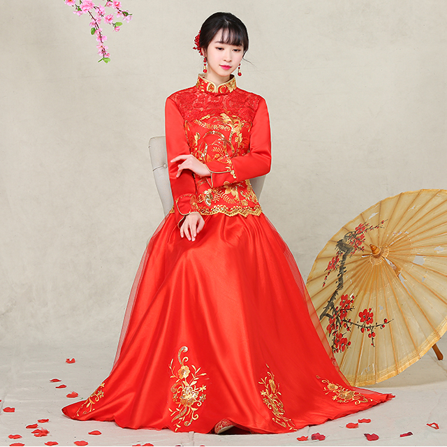 • 敬酒服旗袍 2017春季新款復(fù)古中式禮服秀禾服 新娘嫁衣禮服
