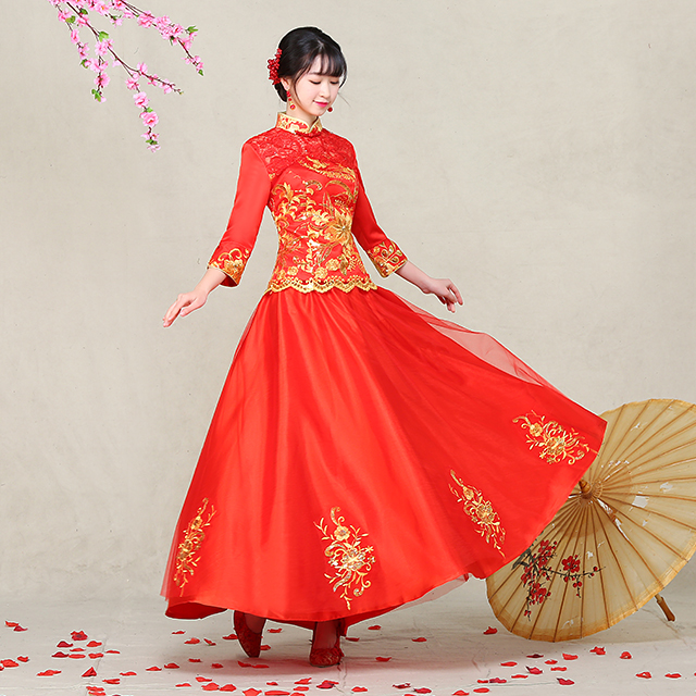 敬酒服旗袍 2017春季新款復(fù)古中式禮服秀禾服 新娘嫁衣禮服