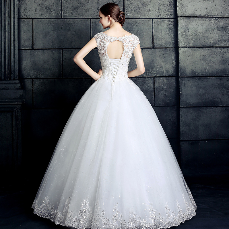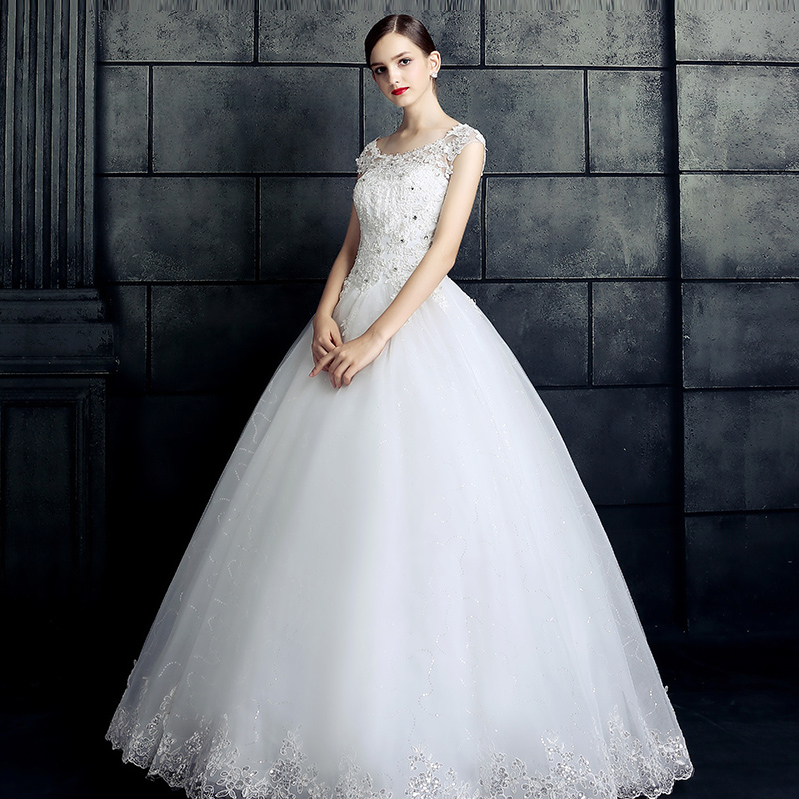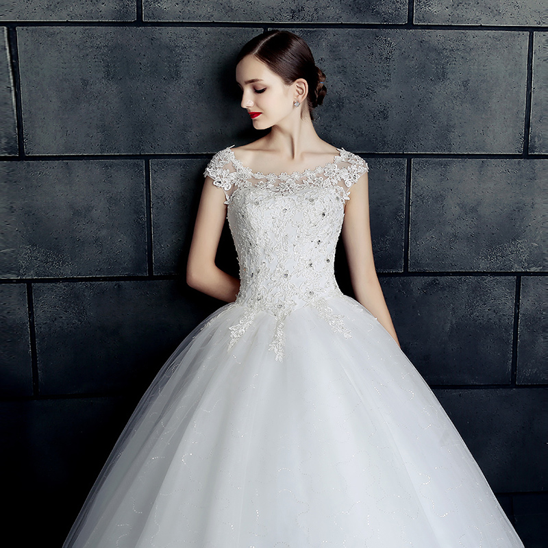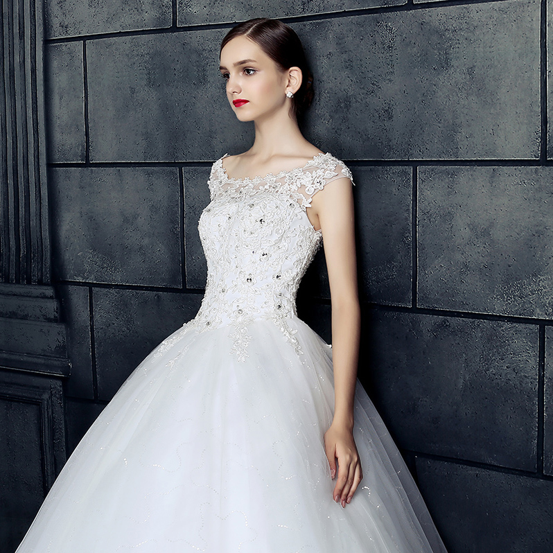 • 5件套!2017新款韓式大碼婚紗禮服新娘齊地一字肩結婚雙肩