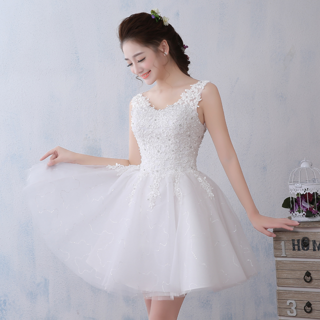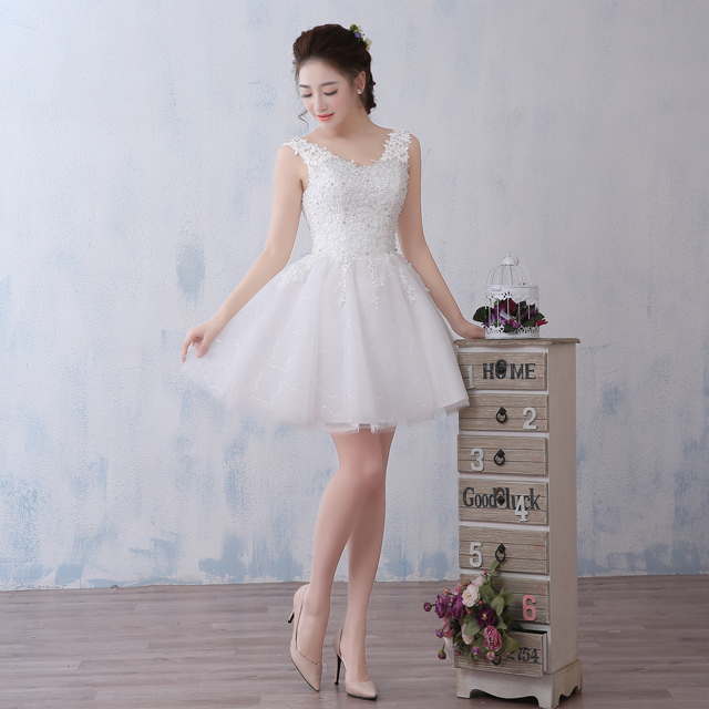 【送項鏈耳環(huán)】新娘禮服紅色短款 晚禮服2017新款顯瘦修身
