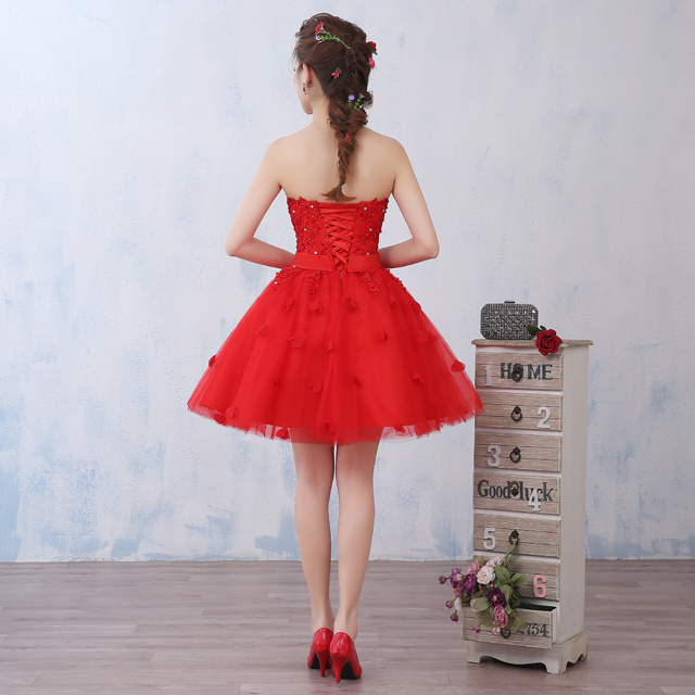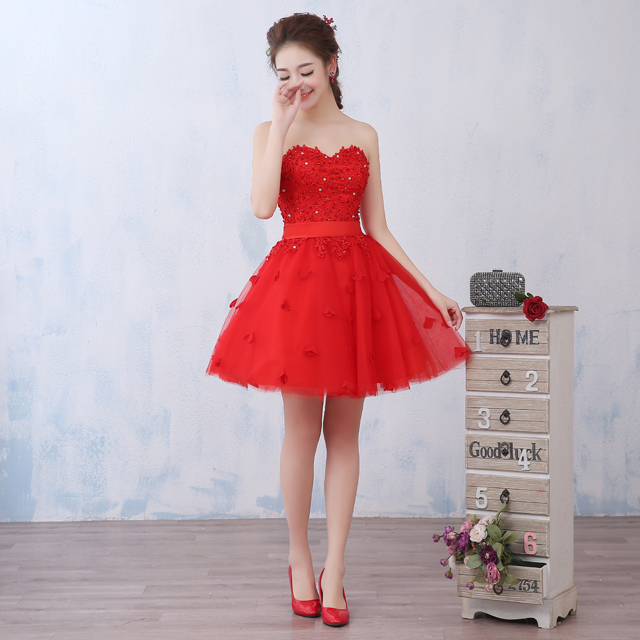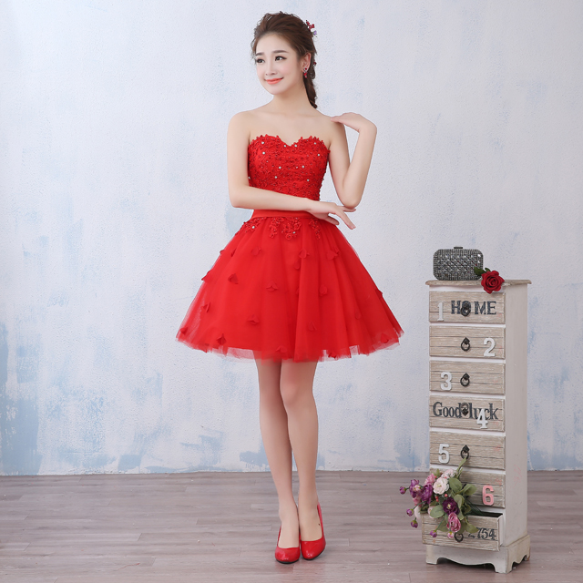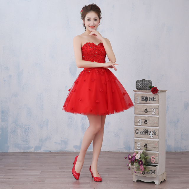 【送項鏈耳環(huán)】敬酒服新娘禮服2017新款短款韓式公主裙抹胸