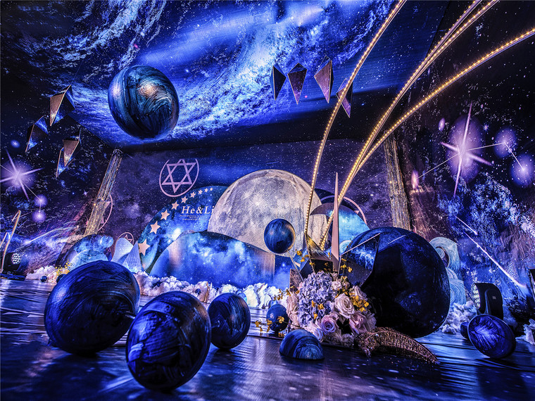 【夢(mèng)工場(chǎng)】仰望星空---室內(nèi)寶藍(lán)色系主題婚禮主題