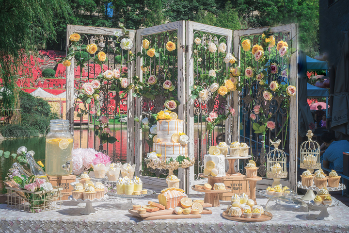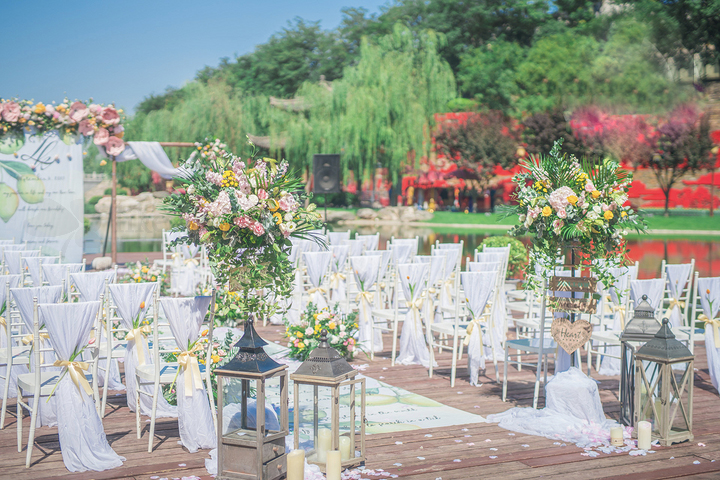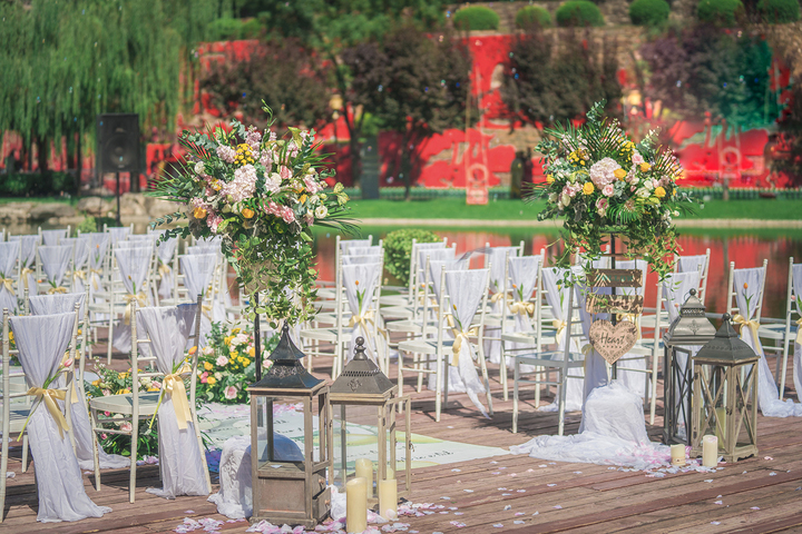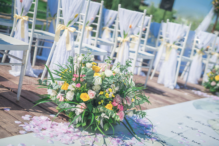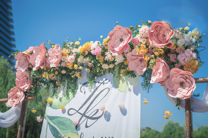 【推薦顏色】粉色+明黃的戶外婚禮
