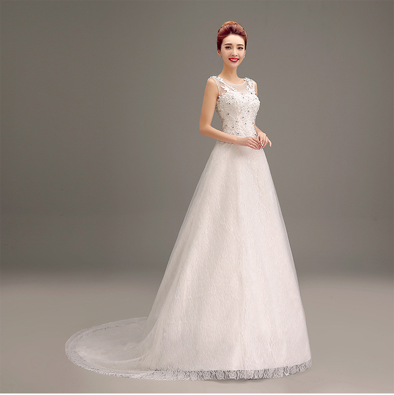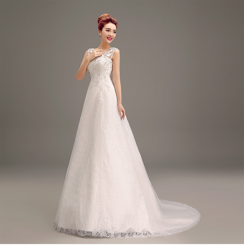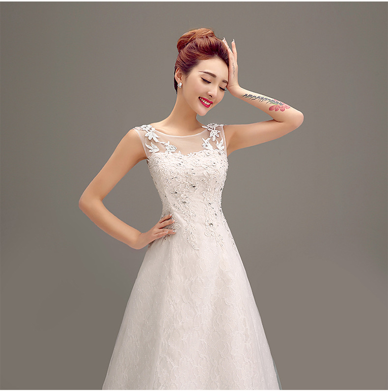 • 2016新款婚紗禮服晚禮服 短袖包肩雙肩齊地韓版新娘新款