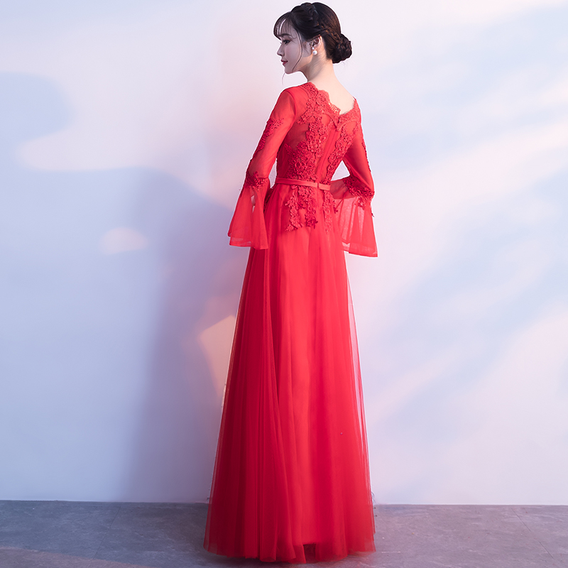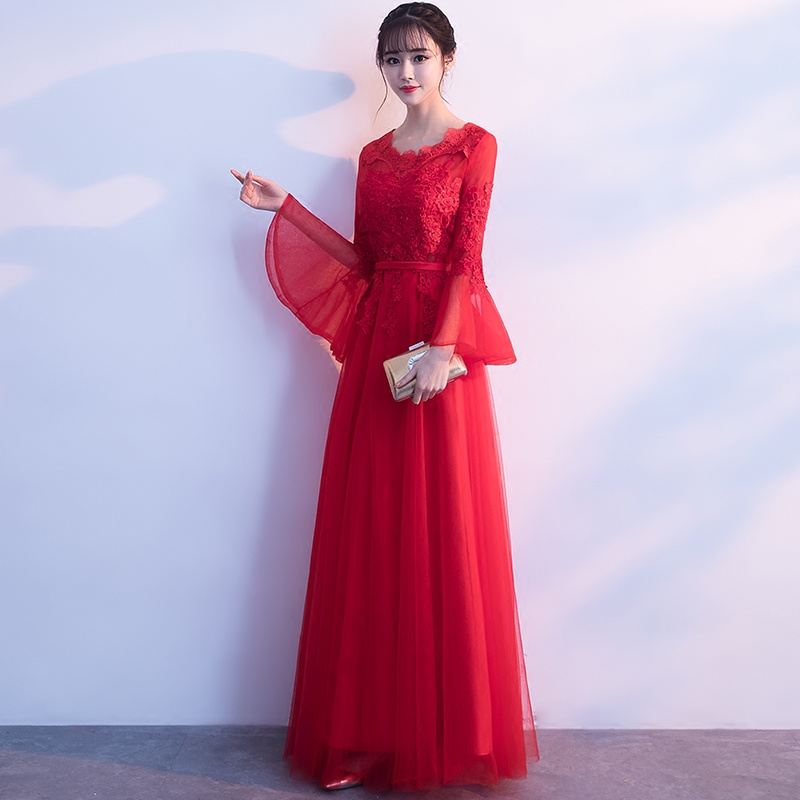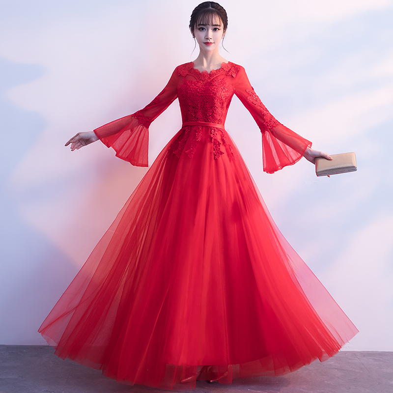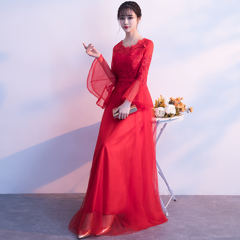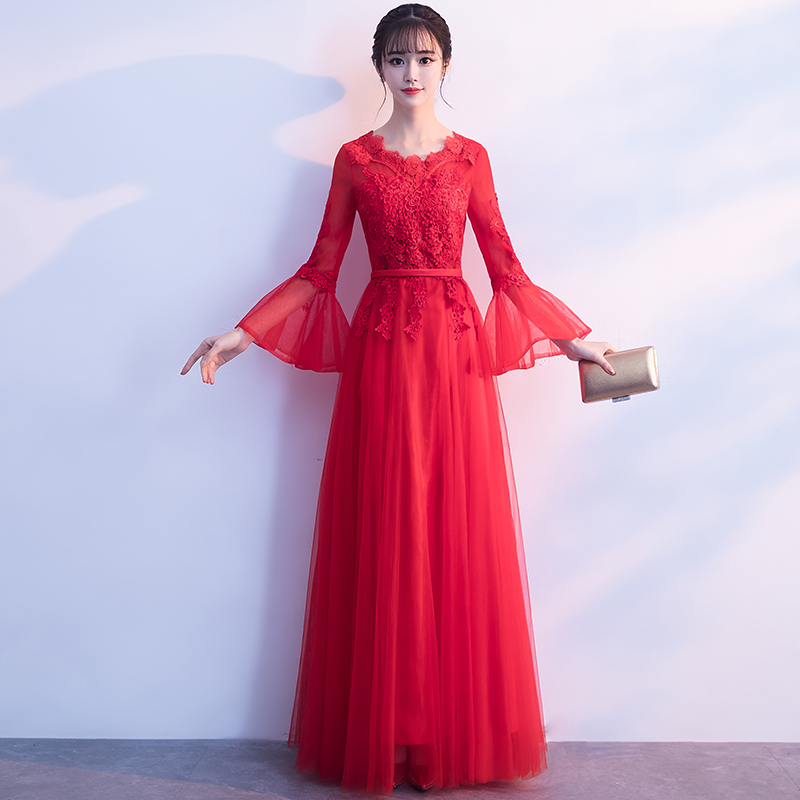 • 敬酒服新娘2017新款結(jié)婚冬季修身顯瘦長袖紅色禮服宴會晚禮服