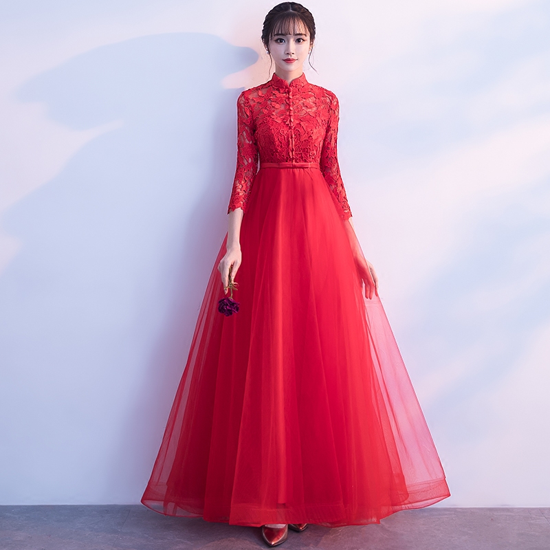 • 高腰大碼晚禮服女回孕婦新娘敬酒服韓式結(jié)婚禮服